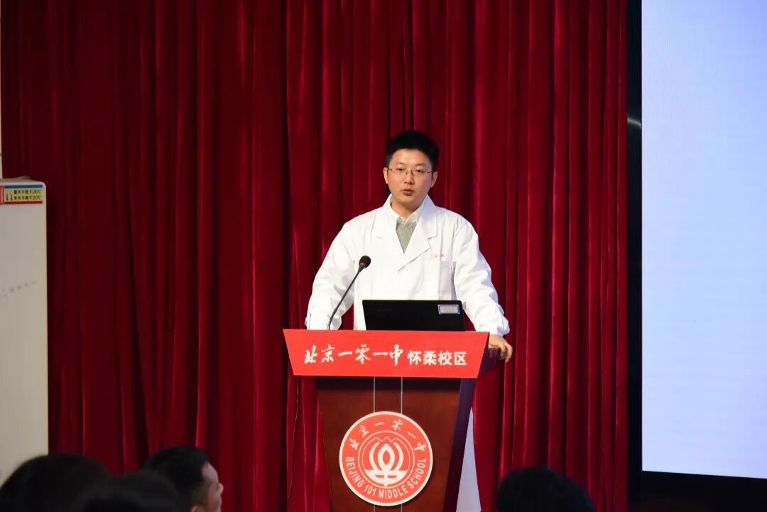 “大家能站起来吗?跟着我一起,左手举高,想象眼前有个篮球筐,去够它!”怀柔101中学的礼堂里,来自中国人民解放军总医院骨科医学部运动医学科李春宝主任,正带领数百名中学生做起传统养生动作“体内束腰”。同学们纷纷起立,伸手、侧身、踮脚,现场笑声与活力洋溢。“名医话健康”环节为师生带来了涵盖身体、心理与应急能力的“立体健康素养课”。
